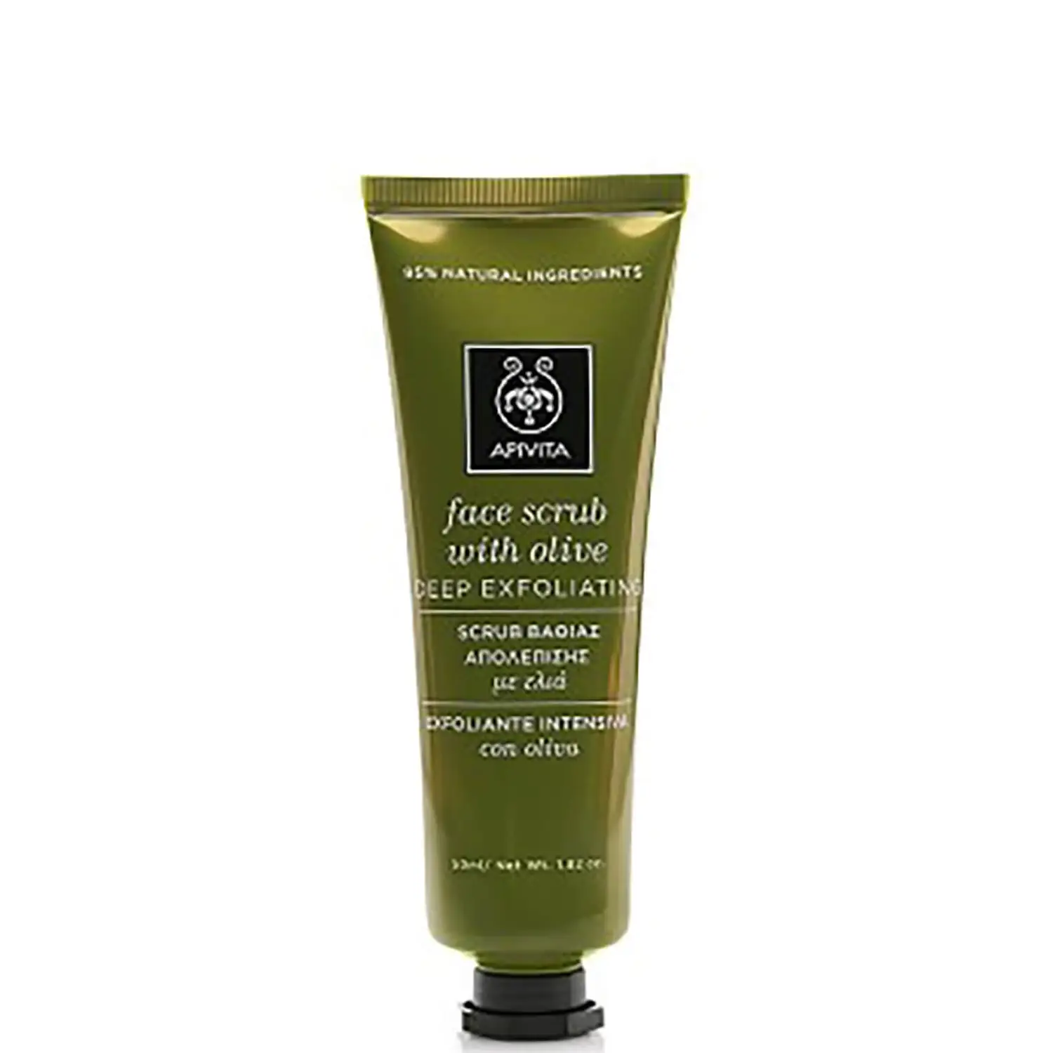 Exfoliante facial con oliva, exfolia y limpia la piel en profundidad.