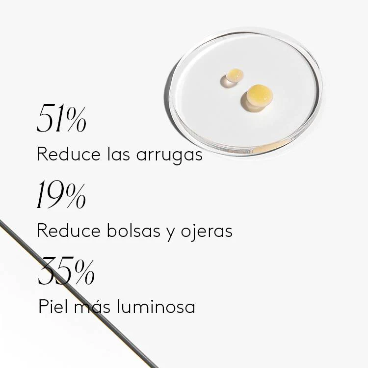 Contorno de ojos que penetra en la piel, reduciendo arrugas profundas, patas de gallo y bolsas y ojeras.