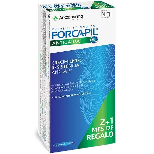Forcapil® Anticaída es un complemento alimenticio a base de 3 aminoácidos de origen 100% vegetal, dos plantas medicinales (Adiantum capillus y Cola de Caballo), vitaminas y minerales.
