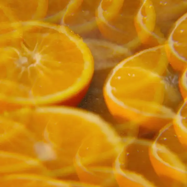 Una naranja jugosa como una explosión de vitaminas, el frescor soleado de la hoja y del fruto, el perfume texturizado y vibrante de la madera.